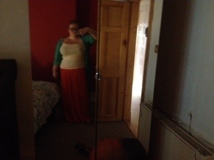 I was flying solo today & so had no one to take my picture. Therefore I had to resort to the dreaded mirror selfie to give you peek at my new orange maxi. I am so ready for summer.