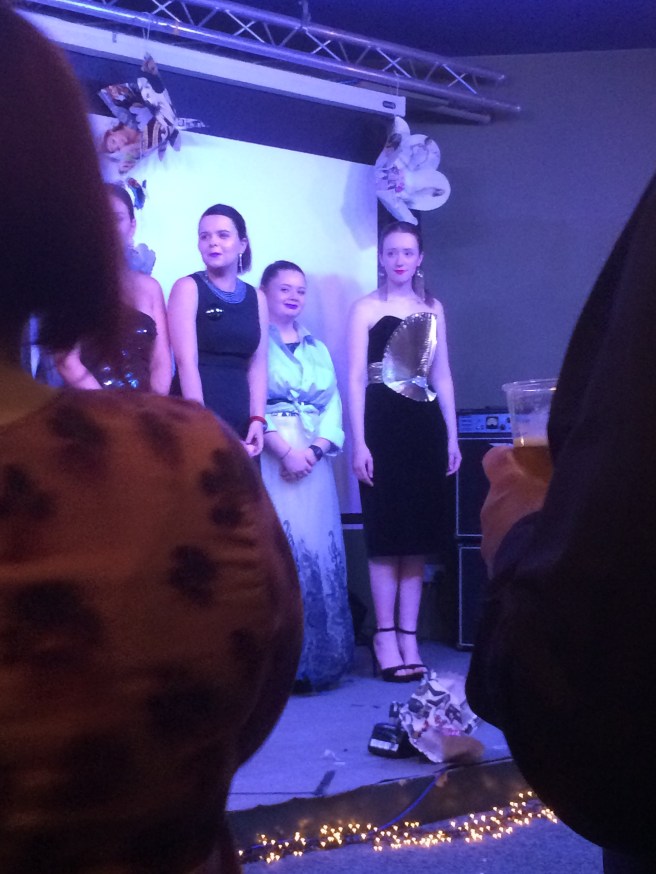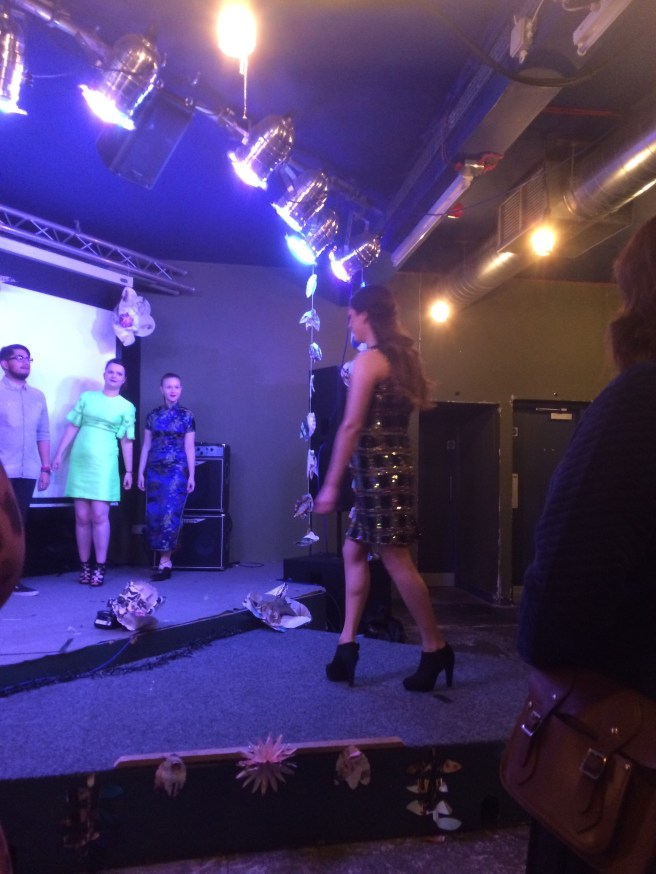 The latter part of the evening included bespoke items upcylced by Glad Rags. This group included an amazing red body con dress which had been given new life with details cut from a vintage 70’s piece. Since I am useless I failed completely in the task of photographing it. Therefore you will just have to take my word that it was joyous.