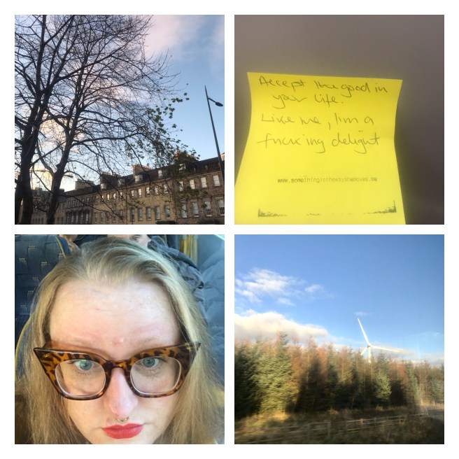 Last week I had some Xmassy cocktails with my favourite man. I took a trip to the very rainy seaside to do some giggling with my lovely Lisa & her equally lovely boy. I checked Edinburgh’s pretty lights on the way home. Of course I spread a little #projectpostit wisdom as I went.