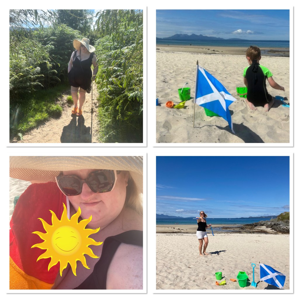 Then it was time for the main event. A little more driving through green mountains to reach Arisaig and the stunning Camusdarach Beach. My clever sister found this treasure. You have to do a mini trek through some greenery, but oh man is it worth it. Soft golden sand, blue sea and a clear view of Muck & Eigg.