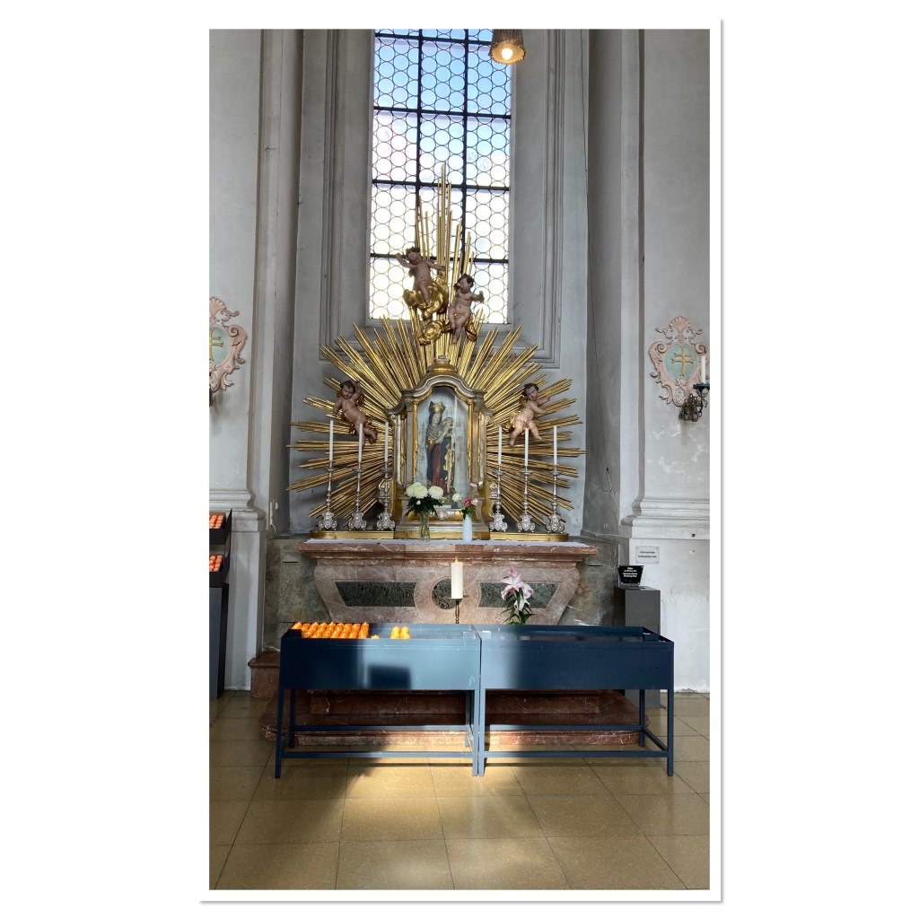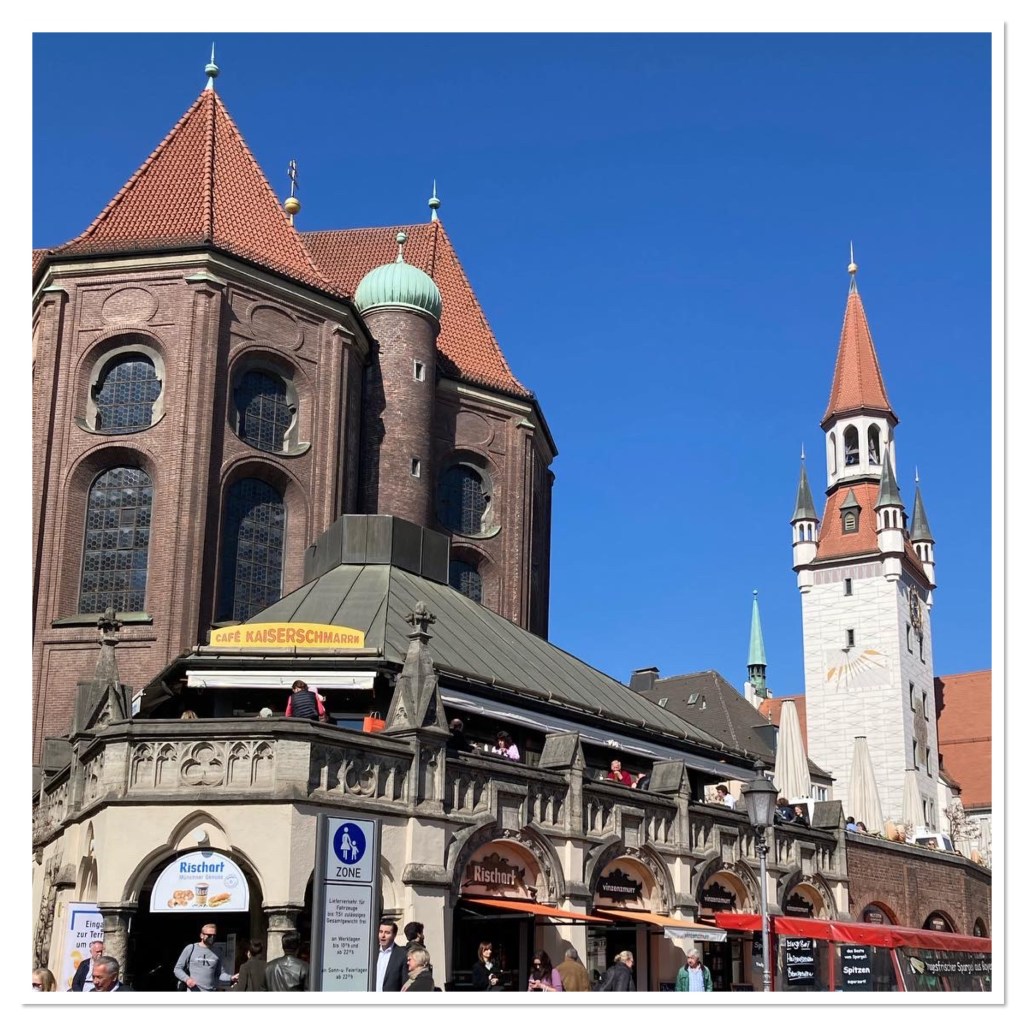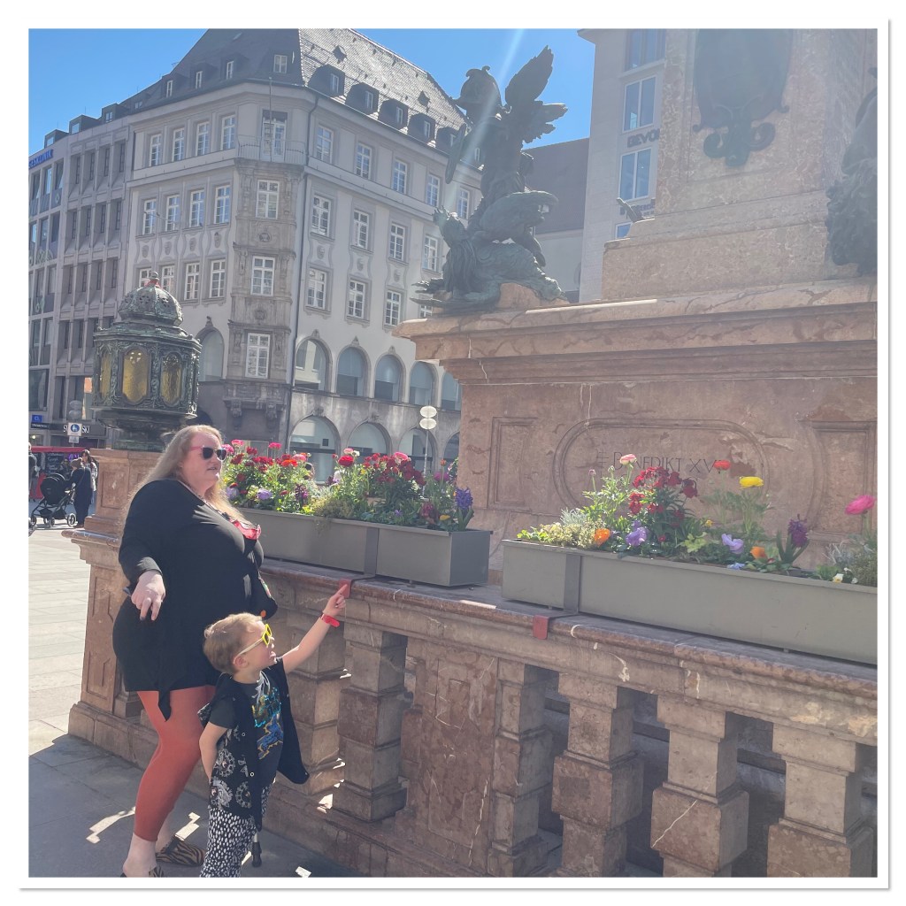 Just around the corner from the town hall is Munich’s old fruit market. These days the stalls have a variety of wares; hand made crafts, flowers, cheese, fruit and plenty of beer. The market is also home to lots of drinking water fountains and my nephew adored them. You can take a 4 year old anywhere in the world and they will be happiest playing with simplest of things. Thus he spent many a delighted minute emptying & refilling water bottles.