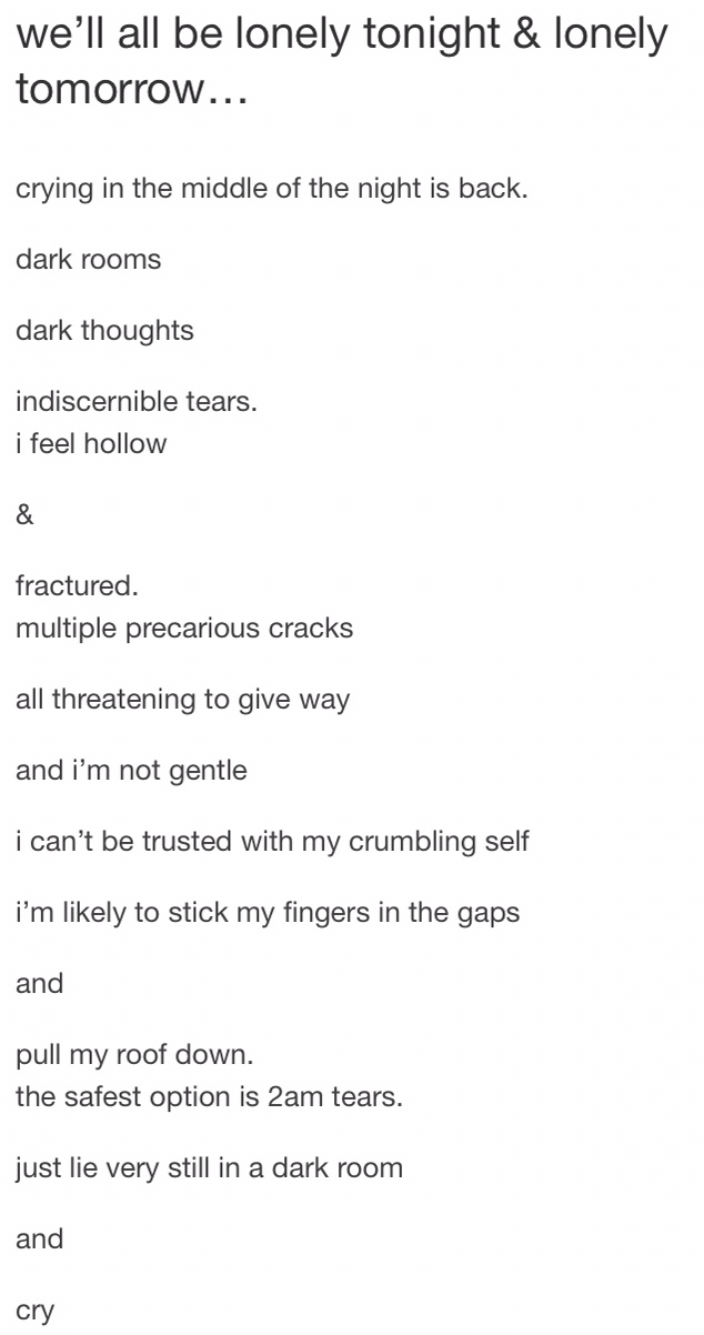 I say some, because, there are people & realities I cannot change. Crashing against solid stone will bring me no comfort. Thus, I want to reveal the parts that I can with this kind & ultimately faceless audience. Hopefully it can help others who feel burdened by conventional decorum. At the very least I may finally feel lighter.