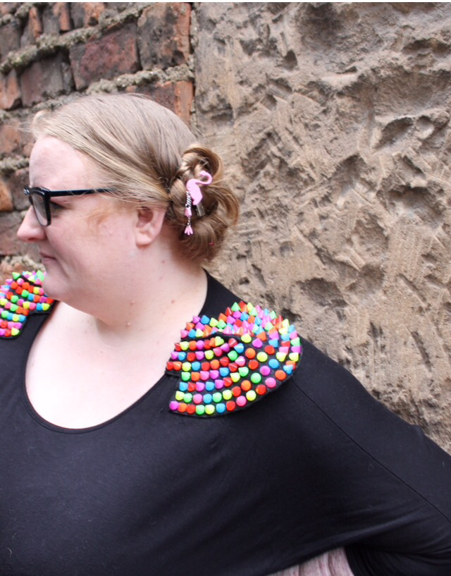 I’m incredibly fond of my spikes. They take this basic Jersey top to the next level. I am equally charmed by this bondishy belt. Be that as it may, nothing compares to the love I feel for my flamingo hair clip. I’m not usually one to latch on to trends, but the flamingos I am seeing everywhere make my heart beat faster.