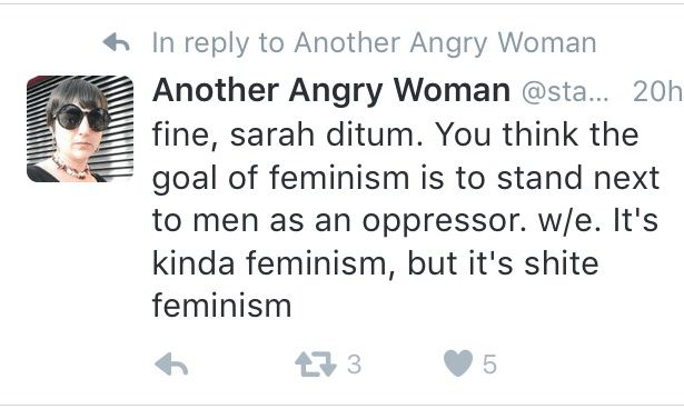 It will come as no surprise to you that I’m not enjoying current wave of internalised misogyny. Almost nothing is more stomach churning that women shitting on other women. I am aware this is far from a new phenomena, but the relish with which its whipping around it vile. As my more progressive sisters advance an intersectional agenda the less enlightened are pushing back. They’re fighting with mean attacks on real issues like period poverty and trans rights. When I see a privileged woman deploying an I had to suffer once so you can too argument, it makes me nauseous. Turn it up to the full on bigotry of transphobia & I’m boaking. Rich white women need to do better. Much, much better.