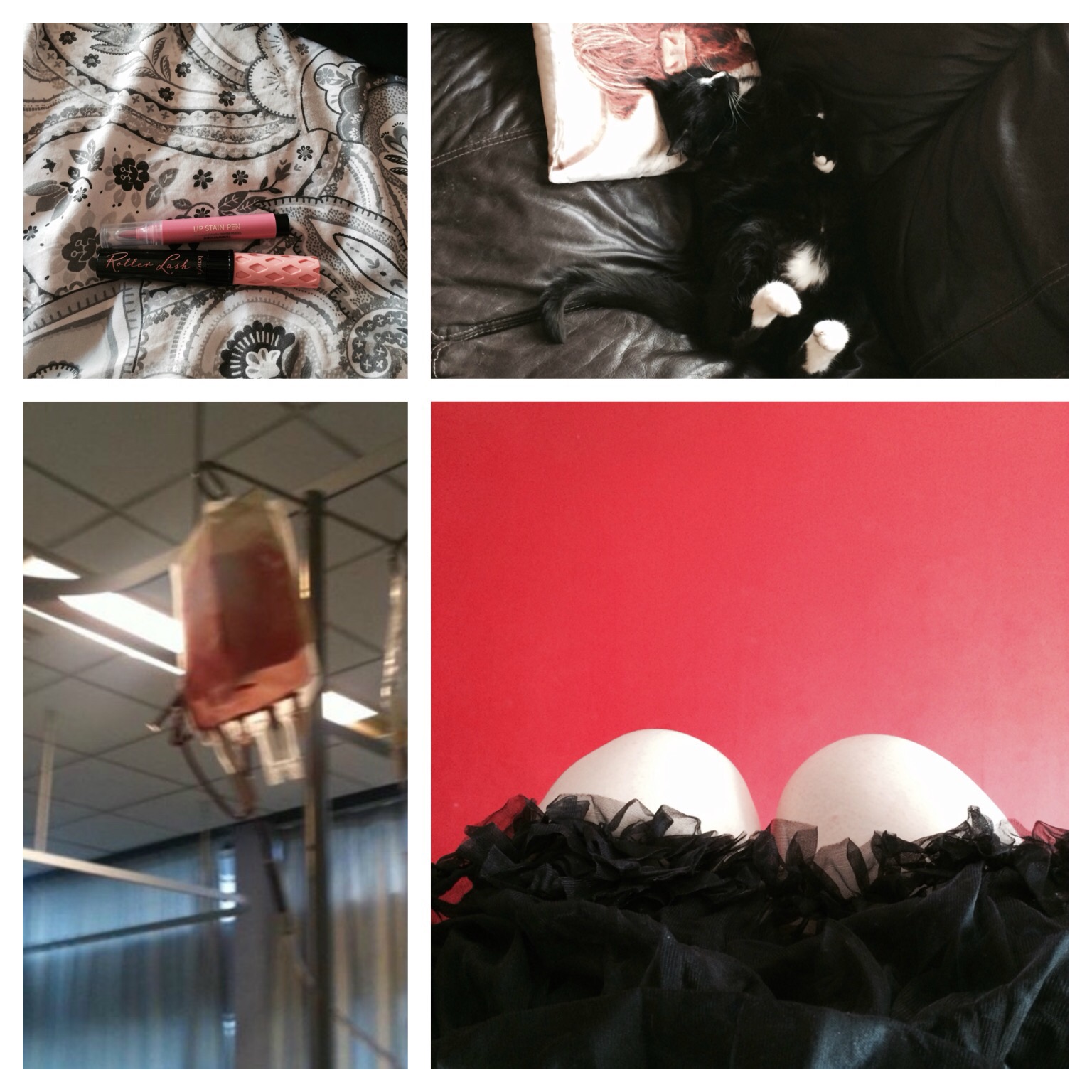 I did get out of this house, but only for hospital nonsense. I had a transfusion & a chest X-Ray, which revealed two cracked ribs. The good news is I look exceptionally cute in my mask from Rosana Exposito.